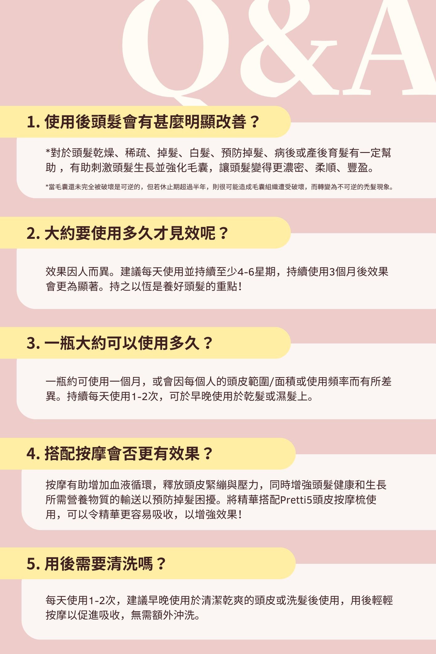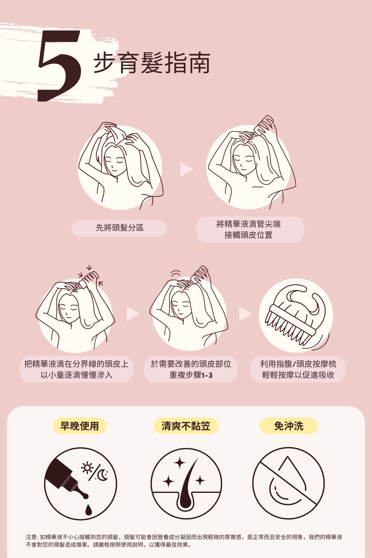 - 可配合按摩梳使用,有助促進吸收及保持頭皮健康。