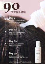 - 洗髮後將頭髮吹至九成乾,於頭皮塗抹「由根出髮煥活精華」。