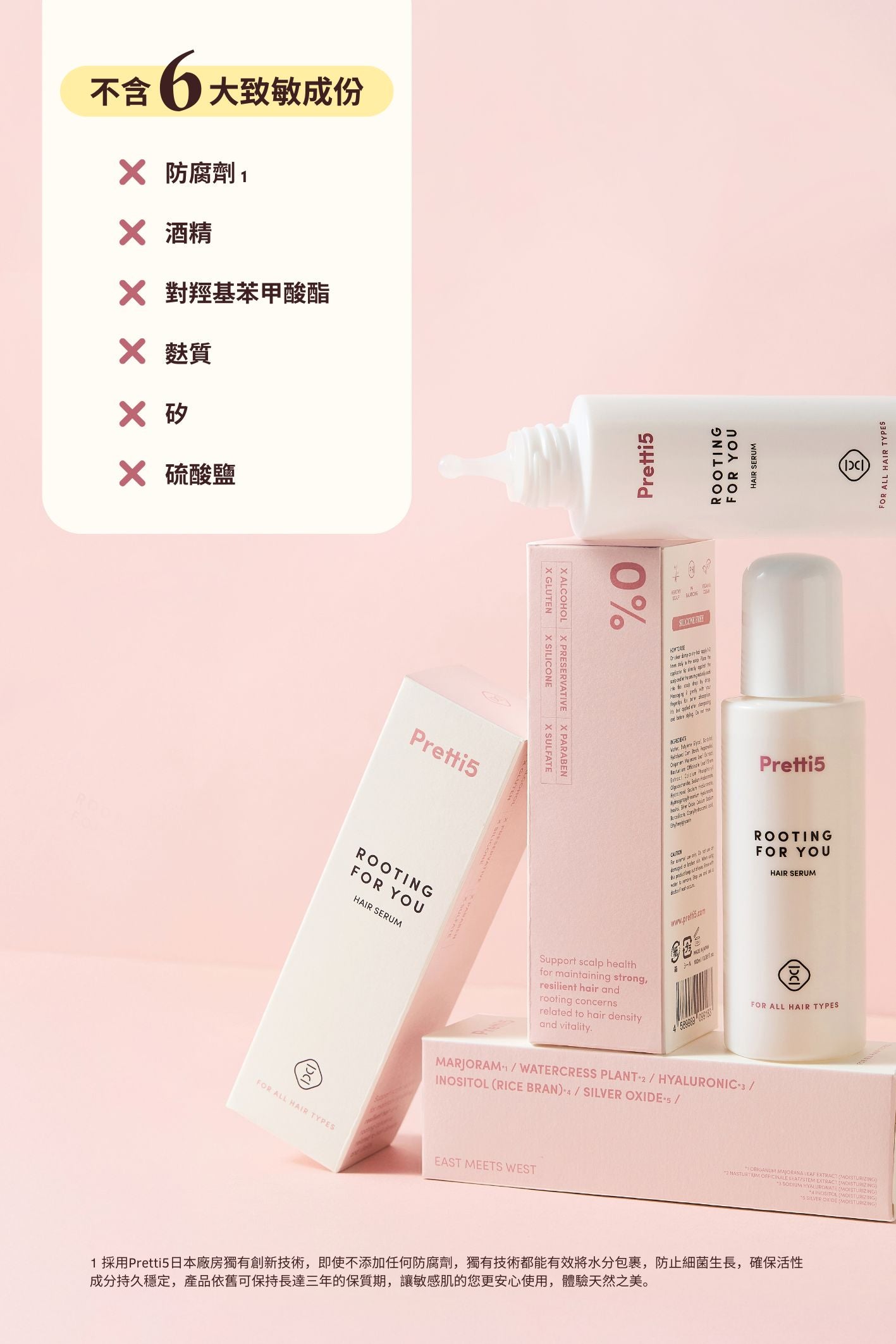 更加入肌醇及水溶性鈣,有助對抗荷爾蒙脫髮問題,為髮根注入動力,強韌每根髮絲。